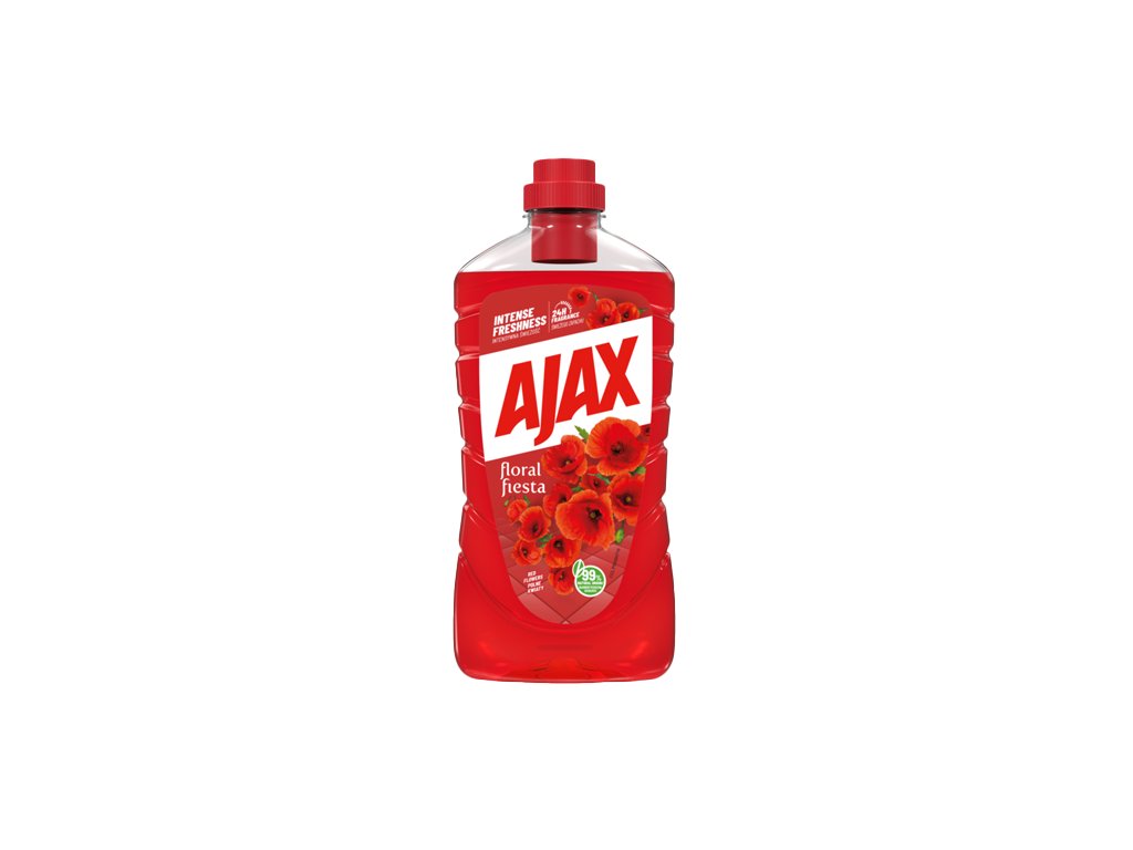 Univerzálny čistiaci prostriedok Ajax Floral Fiesta Red Flowers spája účinné odstraňovanie nečistôt so sviežou vôňou červených kvetov obohatený o prírodné extrakty a esenciálne oleje. Uvoľňuje arómu červených kvetov a prevonia domov až na 24 hodín – bez drhnutia a bez oplachovania.