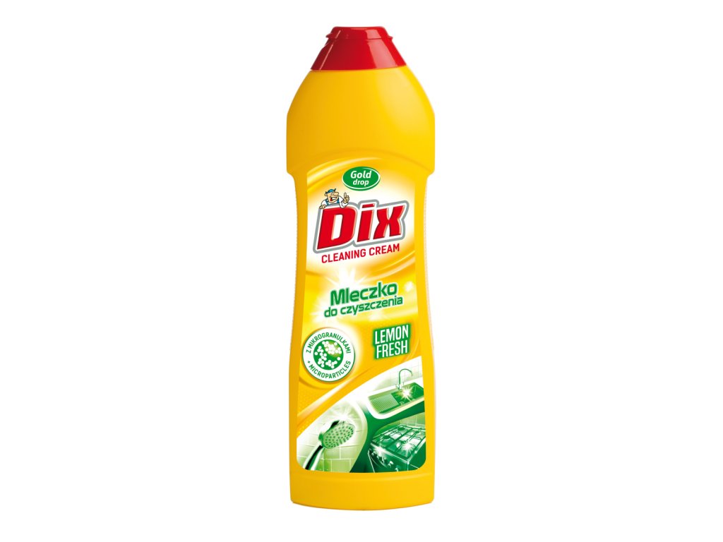 Čistiace mlieko DIX Cleaning Cream Lemon fresh s mikrogranulátmi je účinný pomocník na dôkladné čistenie v kuchyni aj kúpeľni. Hustá konzistencia a abrazívne častice účinne odstraňujú odolné škvrny, mastnotu a usadeniny, pričom zanechávajú povrchy hladké, čisté a so sviežou vôňou. Obsahuje špeciálnu zložku, ktorá chráni a hydratuje pokožku rúk, takže je šetrnejší pri používaní.