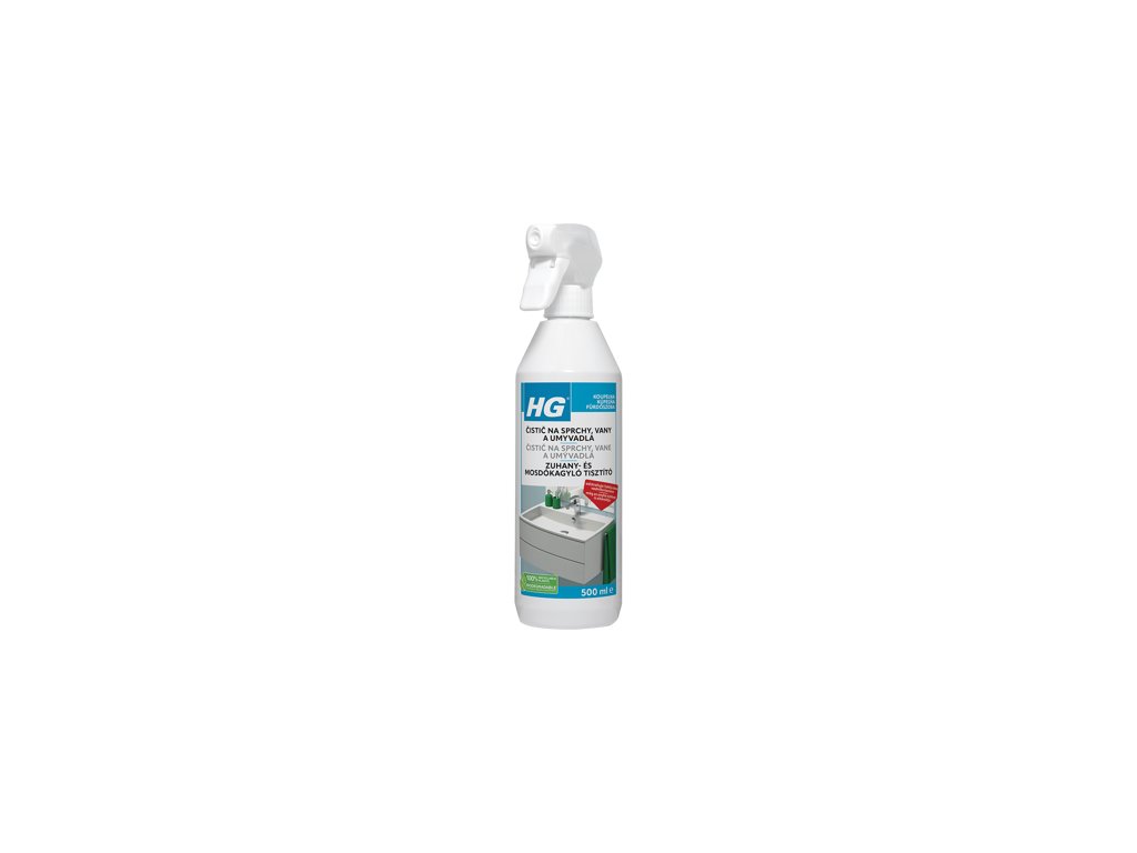 HG Čistič na sprchy, vane a umývadlá (sprej) je ideálny na dennú údržbu kúpeľne. Účinne a šetrne odstráni bežné znečistenie – mydlové usadeniny, kožný maz a ľahký vodný kameň – bez rizika šmúh a bez potreby drhnutia. Možno ho používať na umývadlá, plastové sprchové kúty, vane, batérie, obklady aj citlivé kamene ako mramor a travertín.