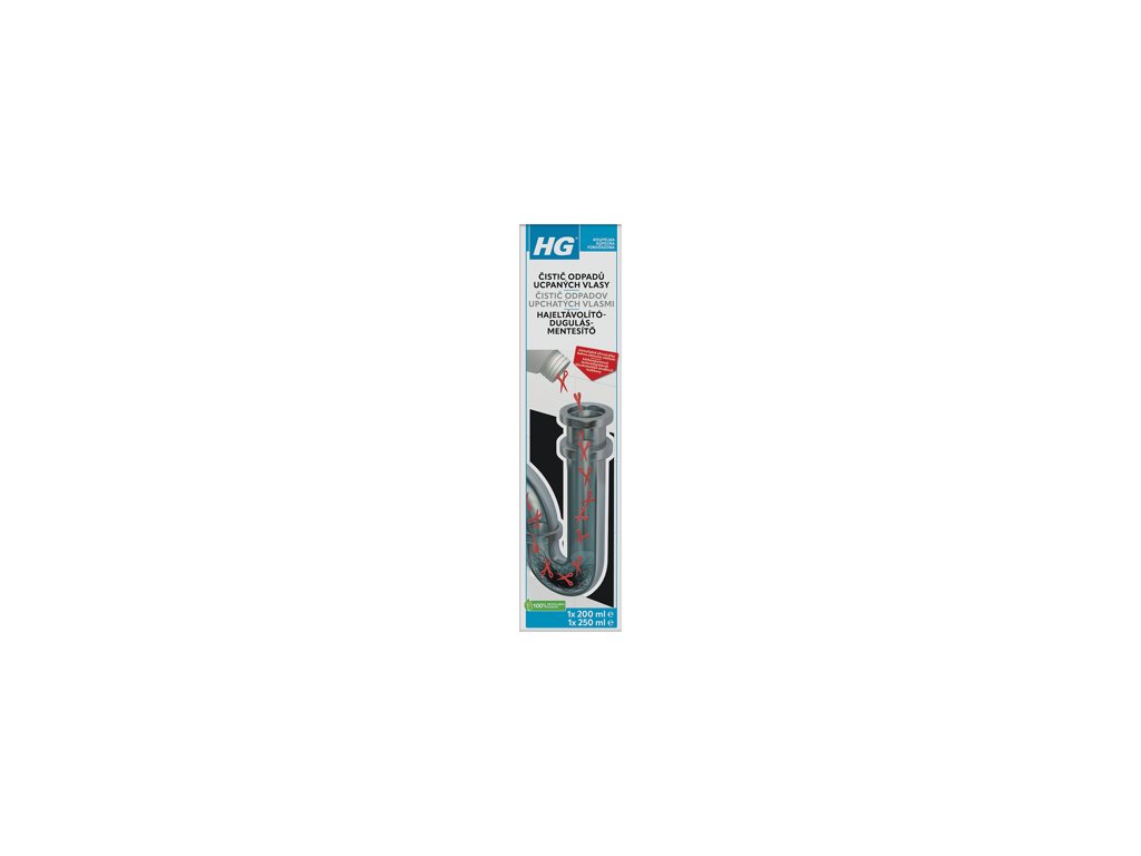 Upchatý odtok v sprche či umývadle má často na svedomí zhluk vlasov spojený so zvyškami kozmetiky. HG Čistič odpadov upchatých vlasmi (obohatený o hydroxid draselný) pôsobí cielene: dvojzložkové zloženie aktivuje rozklad vlasov a organických nánosov, čím uvoľní prietok bez nutnosti demontáže sifónu. Ideálny na kúpeľňové odtoky.