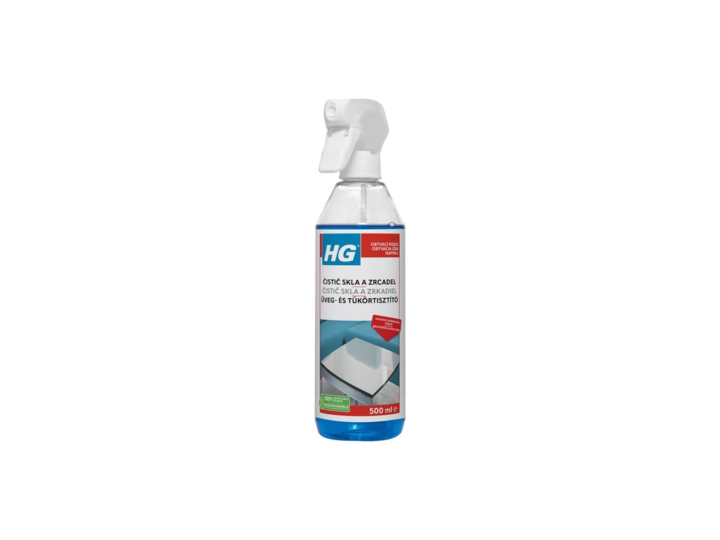 HG Čistič skla a zrkadiel je ideálny na každodenné udržiavanie všetkých sklenených povrchov – od kúpeľňových zrkadiel až po okenné tabule. Jednoducho odstráni špinu, odtlačky a mastnotu, rýchlo sa odparí a nezanecháva mapy. Sklo zostane krištáľovo čisté a lesklé bez leštenia do úmoru.