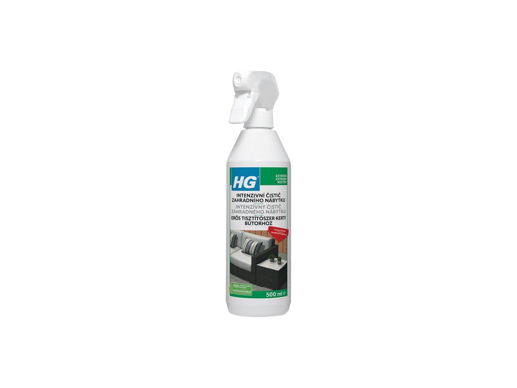 HG Intenzívny čistič záhradného nábytku – účinný sprej na odolné nečistoty.