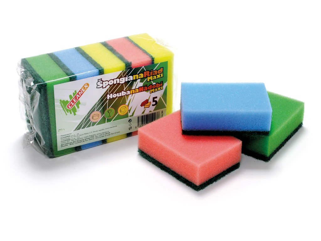 Mäkká časť na jemné čistenie, drsná časť na zaschnutú špinu.