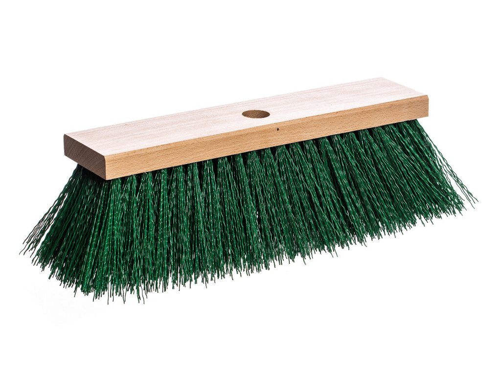 Kvalitný cestársky kartáč s pevným dreveným telom a odolnými vláknami z PVC. Ideálny na zametanie väčších plôch, chodníkov, dvorov či ciest.