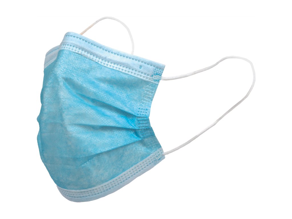 Jednorazové trojvrstvové rúško s pohodlnými gumičkami za uši určené na základnú bariérovú ochranu v bežných prevádzkach aj zdravotníctve.